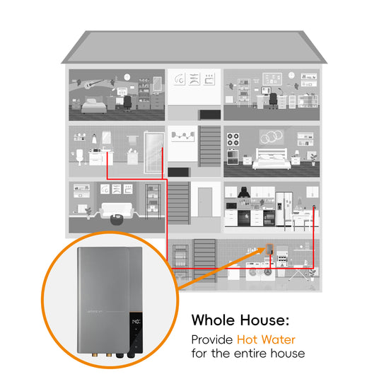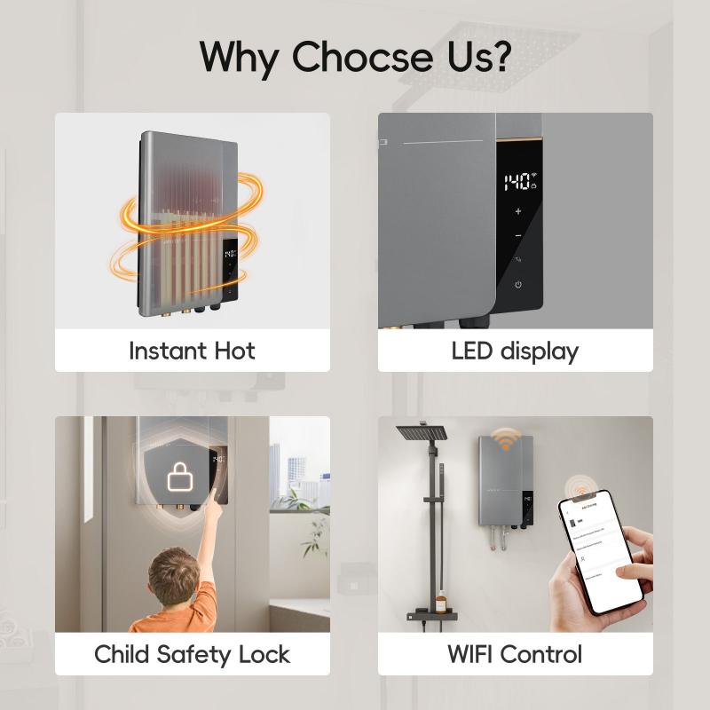 Experience consistent hot water at 125°F within seconds. No preheating or tank needed – ideal for showers, cooking, and large households.