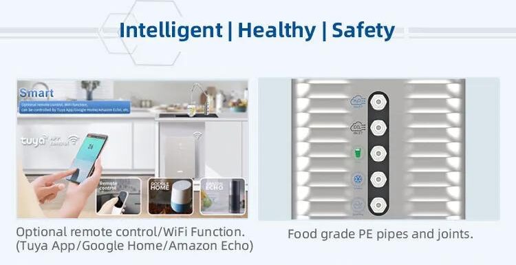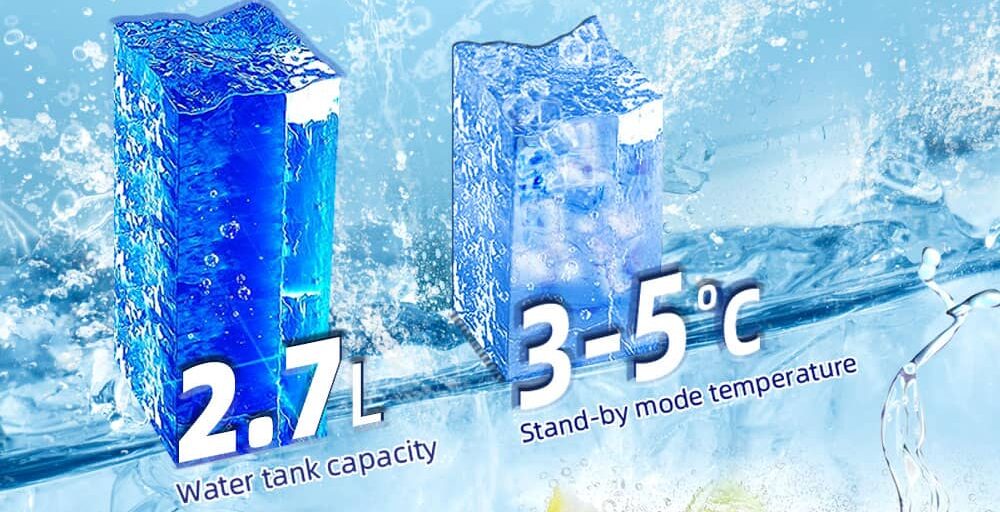 - With 26L/h cooling capacity, adjustable 3–15℃ temperature, ECO R290 refrigerant, and high flow rate up to 2.7L/min, this space-saving under-sink unit features stainless steel faucet, Tuya APP smart control, quiet operation ≤45dB, and RO system compatibility.