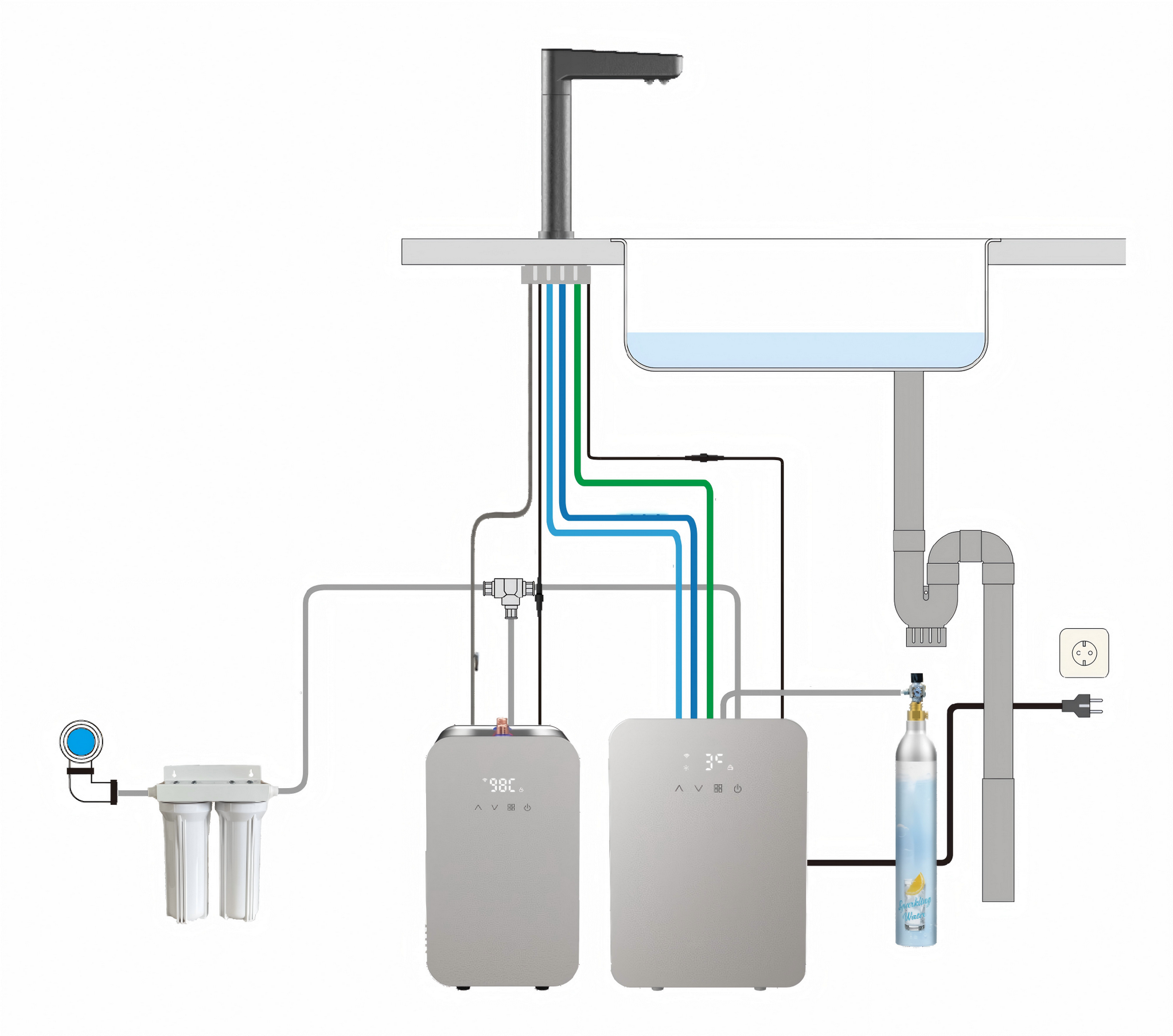 - The Wintemp under‑counter Sparkling Water Dispenser – a 3-in-1 all-in-one tap system delivering chilled, sparkling, and filtered water for home or commercial use.